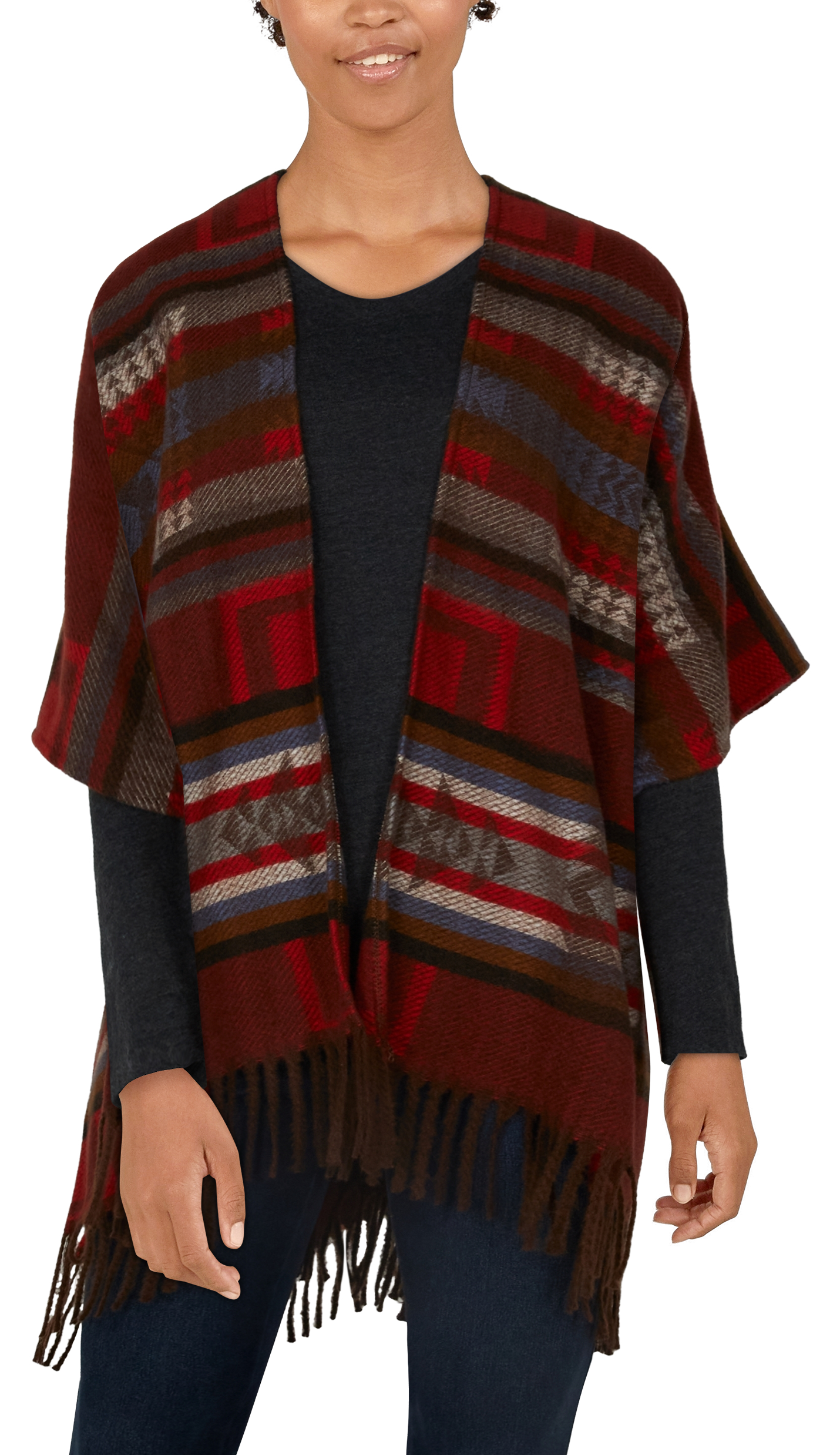 NATURAL REFLECTIONS Flecked Check Hooded Ruana