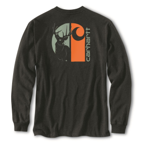 Camp, shop, or farm work, this CarharttA® Long-sleeve Graphic Tee is a go-to for your daily routine. Its heavyweight cotton jersey stands up to the test of time, and a loose fit offers extra room to move, bend, and twist. 6.75-ounce, 60.40 cotton/polyester Loose fit Rib-knit crewneck and cuffs hold their shape throughout the day Side-seam construction minimizes twisting Left-chest pocket with sewn-on Carhartt label Carhartt graphic on left sleeve Carhartt "Deer" graphic on back Tagless neck label for a smooth feel