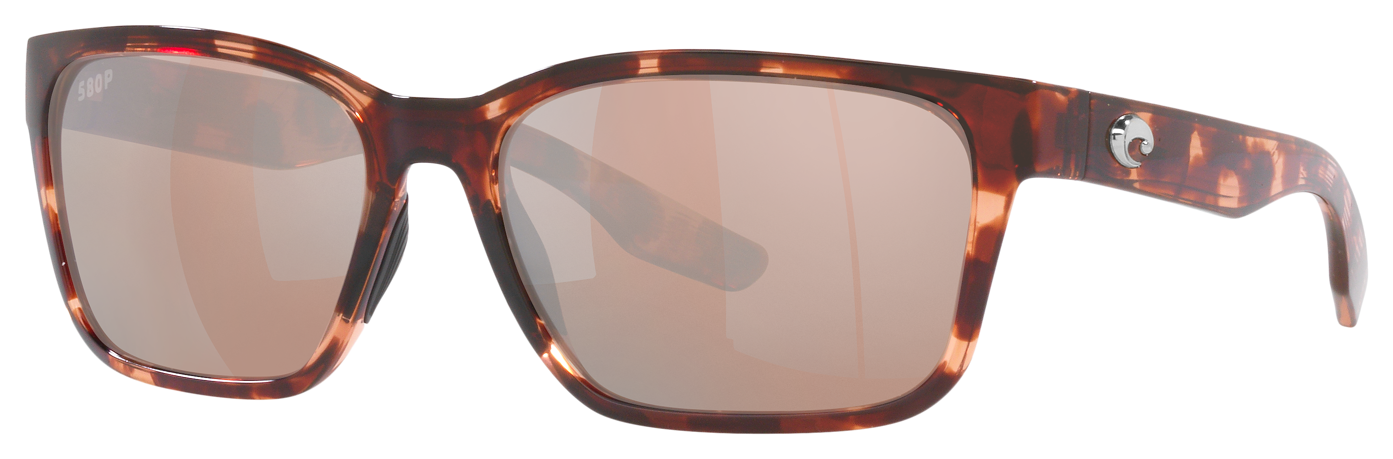 Costa Del Mar Palmas 580P Polarized Sunglasses for Ladies are ideal for the beachGǪand much more. These Costa women's sunglasses boast impact- and scratch-resistant plastic polarized lenses that block glare, enhance visual clarity on the water, and safeguard your eyes from 100% of harmful UV rays. 580 technology goes beyond polarization to produce the best lenses on the planet by selectively filtering out harsh yellow and harmful blue light, making colors brighter and objects sharper. The sport frames are made from tough, durable, co-injected nylon using an eco-friendly bio-resin process. These polarized Costa sunglasses sport HydroliteGäó nose pads for a more secure, comfortable fit. They come with a case and cleaning cloth. Mfrs. limited 2-year warranty.Manufacturer style #: 6S9081. Polarized lenses kill glare Polycarbonate lenses block reflected glare and reduce eyestrain 100% UVA, B, and C protection Tough, durable co-injected nylon frames made through an eco-friendly bio-resin process Hydrolite nose pads for a more secure, comfortable fit Includes case, cleaning cloth, and mfrs. limited 2-year warranty