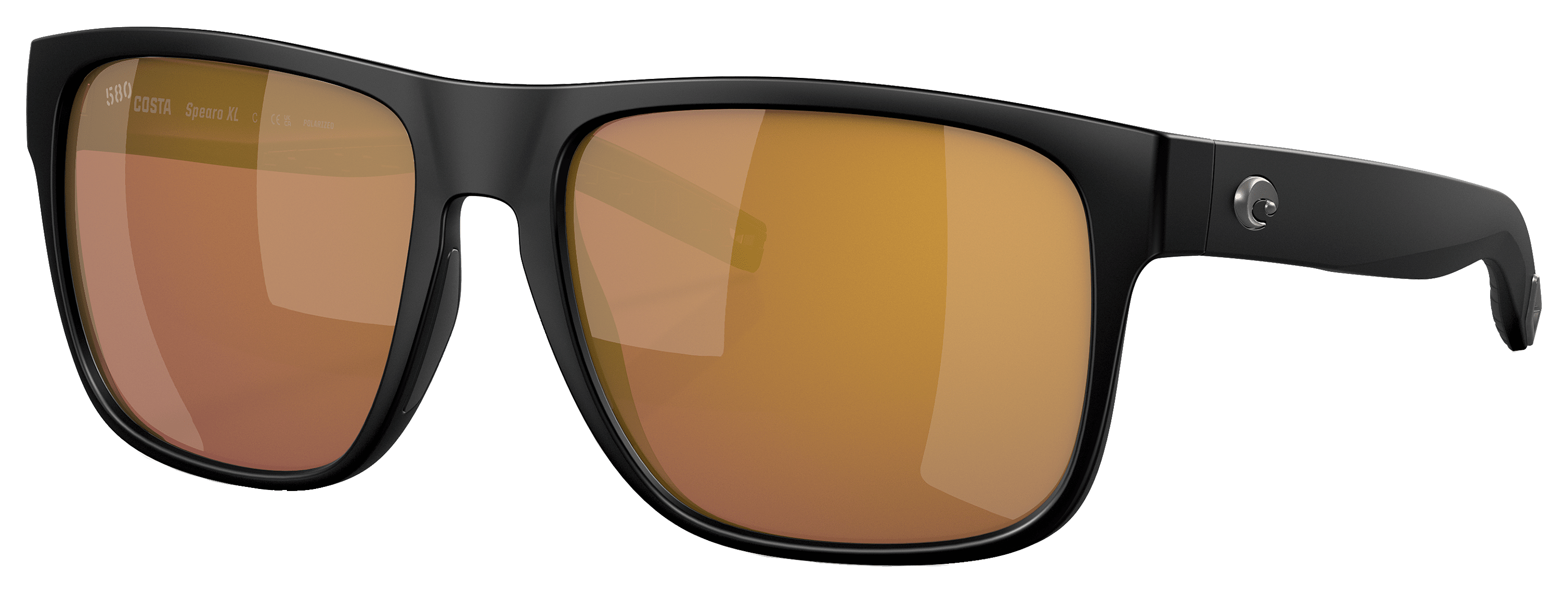 Whether you're in the water, on the water, or near the water, Costa Del Mar Spearo XL 580G Glass Polarized Sunglasses are a smart choice. 10% bigger than the original style for a wider field-of-view and a better fit, these Costa Del Mar Spearo XL sunglasses boast 580G LightWAVE glass lensesGÇöthe clearest in the industry. Mirror coatings (on select styles) help combat glare. The scratch-resistant lenses are thinner and lighter than average polarized glass. 580 technology goes beyond polarization to produce the best lenses on the planet by selectively filtering out harsh yellow and harmful blue light, making colors brighter and objects appear more defined. These fishing sunglasses feature durable co-injected nylon frames made using an eco-friendly Bio-ResinGäó process (using castor oil instead of petroleum) to reduce emissions and overall carbon footprint. Costa Del Mar Spearo sunglasses sport vented nose pads and nonslip, keeper-ready temple tips and come with a case, a cleaning cloth, and a mfrs. 2-year limited warranty. 580G LightWAVE glass lenses - the clearest in the industry Scratch- and impact-resistant lenses Polarized to kill glare Mirror coatings (on select styles) help combat glare 100% UVA, B, and C protection TR-90 nylon frames with vented nose pads and nonslip, keeper-ready temple tips
