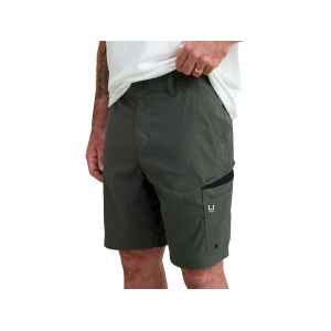 The Huk Men's Icon Shorts are designed with cargo style side pocket with zippered closure as well as the classic dual front diagonal pockets. Equipped with belt loops, these shorts can be worn both formally or casually. FeaturesBelt loopsZippered frontButton closure