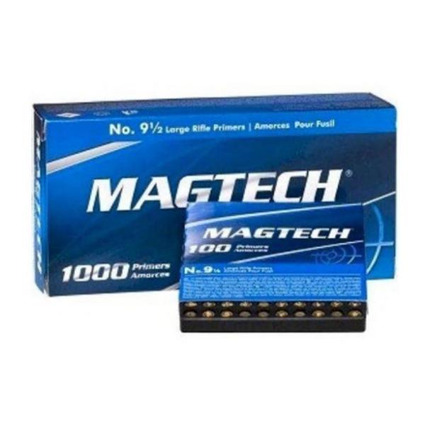 Magtech Large Rifle Primer 9½ MIL-STD for consistent ignition in rifle reloading. 1000 count box.