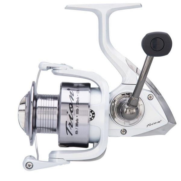 The Pflueger Trion Spinning Reel is a dependable and smooth reel to add to your fishing set-up. Made from lightweight graphite, the body of the Pflueger Trion Spinning Reel is durable, while the aluminum spool balances strength and smooth operation for a variety of different fishing techniques. Featuring an aluminum handle with a soft-touch knob, this Pflueger spinning reel is convertible between right and left hand retrieve. Additional features on the Pflueger Trion Spinning Reel include a sure-click bail, oil felt drag, and an anti-twist line roller. Grab the Pflueger Trion Spinning Reel this fishing season for success on the water.