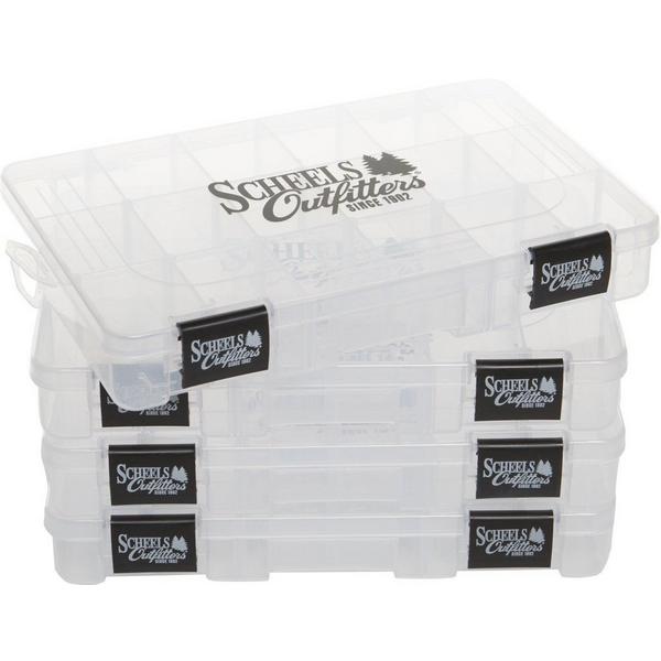 Keep your lures, jigs, and other tackle organized and prepped for action with the Scheels Outfitters 360 Tackle Organizer Box, available in a 4-pack. With its easy, adjustable compartments, this tackle organizer is designed for custom and optimal storage to suit your needs. The secure clasps and UV ray, scratch resistant cover also help to protect your gear from the elements. Make the most of your time on the water with the help of the SCHEELS Outfitters Tackle Organizer Box.