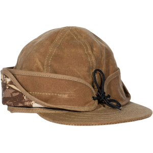 The rain will roll right off Stormy Kromer Men's First Lite Marsh Cap with new paraffin-treated 100% cotton. A bit more streamlined than the traditional six-panel crown, this workhorse features a wool-blend fleece fold-down earflap and soft cotton flannel lining. Happy adventuring! Features10 oz. paraffin-treated 100% cotton duck40/35/20 polyester/acrylic/wool-lined fold-down earflap (Sand/Hickory)100% polyester fleece-lined fold-down earflap (Blaze Orange, Treestand)100% cotton flannel liningCut and sewn in the USA with US and globally-sourced materialsSpot clean only