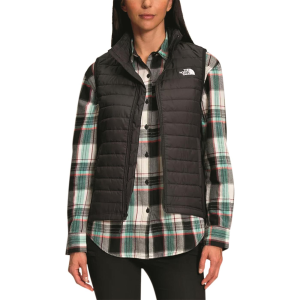 The North Face Women's Canyonlands Hybrid Vest combines warmth and mobility for hiking, camping, fishing, or daily wear. Made with 100% recycled polyester body fabric and breathable stretch-fleece side panels, it offers comfort without restricting movement. The HEATSEEKER synthetic insulation delivers reliable warmth in cool conditions. Elastic-bound armholes and a reverse-coil center front zip ensure a snug, secure fit. Secure-zip hand pockets provide convenient storage during your outdoor adventures. Slim fit design for a streamlined look Non-PFC DWR finish repels water Stretch-fleece side panels enhance breathability HEATSEEKER synthetic insulation provides warmth