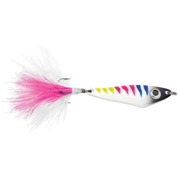 When the new Hatchet Spoon hits the water, its intense rapid start & fluttering energy delivers maximum action and vibration, grabbing the attention of aggressive fish. We've dressed this spoon with a Marabou teaser tail, which conceals a super sharp VMC treble hook. Oversized holographic eye and a variety of UV, polished metal attractor and custom color patterns. Ultra Glow colors last up to 15 minutes.