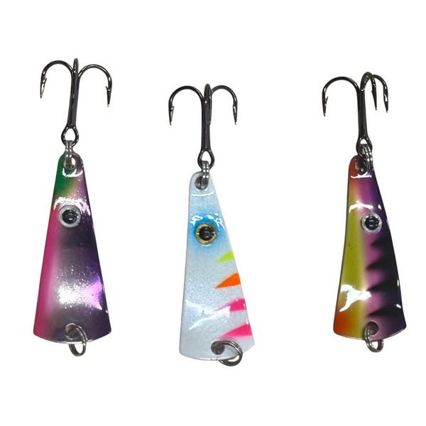 Please note: tackle kits are not returnable.You’ve asked for it, and now we’ve delivered. The VMC Tingler Spoon’s unmatched wide wobbling action exaggerates the movement of dying baitfish with its unique curved body and V-Shaped design. Large Holographic Eye and UV Glow colors increase your odds of catching more fish! And just when you think it’s time to re-charge rest assured the VMC Ultra Glow colors lasting up to 15 minutes means more time underwater and less time out.Scheels Exclusive Color Kit includes the following lures: