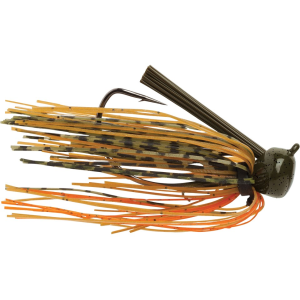 VMC's classic football head design goes weedless.FeaturesDesigned for any water depth, sand, gravel and rock bottomsCustom silicone full skirtsColor-matched brush guardHeavy-duty VMC Wide Gap hook
